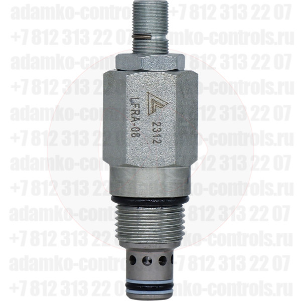 LFRA-08 Двухлинейный регулятор расхода с компенсацией по давлению, гидравлический клапан (гидроклапан) картриджного (ввертного) исполнения, гнездо SAE8/2 (SAE 08), резьба 3/4-16 UNF-2A, диапазон регулировки 2-20 л/мин, 240 бар (Keta Hydraulics, Китай). LFRA-08 - это ввертной двухлинейный регулятор потока, компенсируемый по давлению (гидравлический клапан картриджного типа). Компенсация по давлению означает, что поток жидкости, проходящий через регулятор расхода, не зависит от давления и вязкости масла.