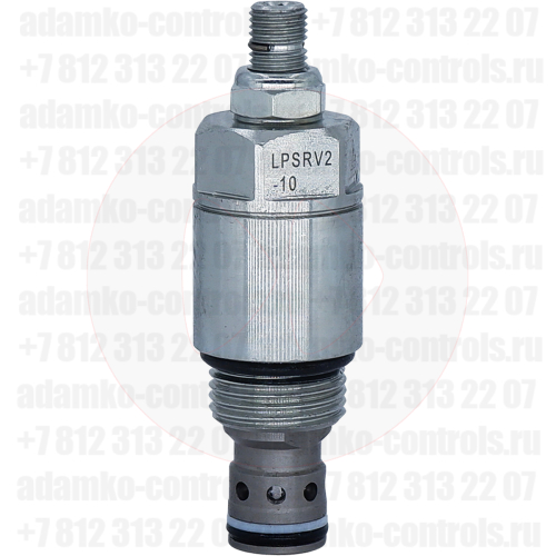 LPSRV2-10-50 Предохранительный гидравлический клапан (гидроклапан) картриджного (ввертного) исполнения, гнездо SAE10/2 (SAE 10), резьба 7/8-14 UNF-2A, 113,6 л/мин, 420 бар, диапазон регулировки 41-345 бар (преднастройка на 110 бар) (Keta Hydraulics, Китай). LPRPS2-10 - это ввертной редукционно-предохранительный гидравлический клапан непрямого действия (с плотным управлением), картриджного типа. Редукционно-предохранительные клапаны являются взаимозаменяемыми с редукционными клапанами, однако они имеют дополнительную функцию: поддержание постоянного давления в линии 1 при движении обратного потока в линию 3 (сливная линия). Давление, подаваемое в линию 2 (вход), понижается до определенного значения в линии 1 (линия редуцированного давления).
