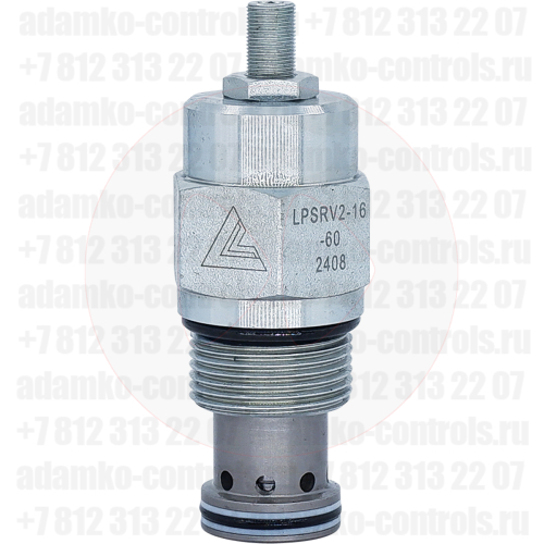 LPSRV2-16-60 Предохранительный гидравлический клапан (гидроклапан) картриджного (ввертного) исполнения, гнездо SAE16/2 (SAE 16), резьба 1 5/16-12 UNF-2A, 400 л/мин, 420 бар, диапазон регулировки 10-420 бар (преднастройка на 200 бар) (Keta Hydraulics, Китай). LPSRV2-16 - это ввертной (картриджный) гидравлический клапан непрямого действия (с пилотным управлением). Предохранительный гидроклапан LPSRV2-16 обеспечивает защиту гидравлической системы от избыточного давления. Клапан является нормально закрытым. Предохранительный клапан открывается, позволяя сбросить давление в маслобак, в случае если давление в системе достигает значения давления настройки клапана.