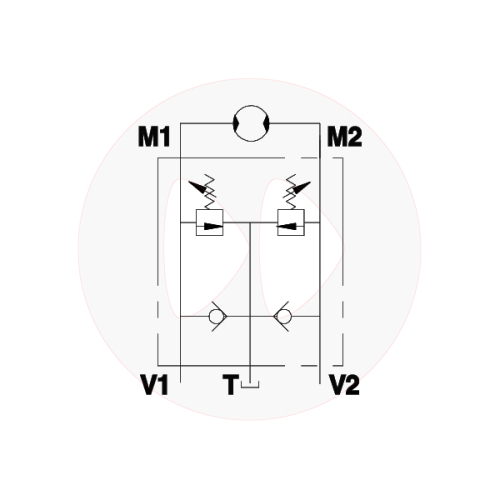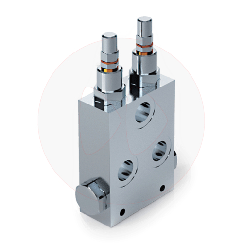 VAUAC 1/2" (V0508/300) Сдвоенный предохранительный гидроклапан с обратными клапанами с корпусом (сталь), 1/2" BSP, 70 л/мин, 80-300 бар, способ регулировки - шестигранник с защитным колпачком.